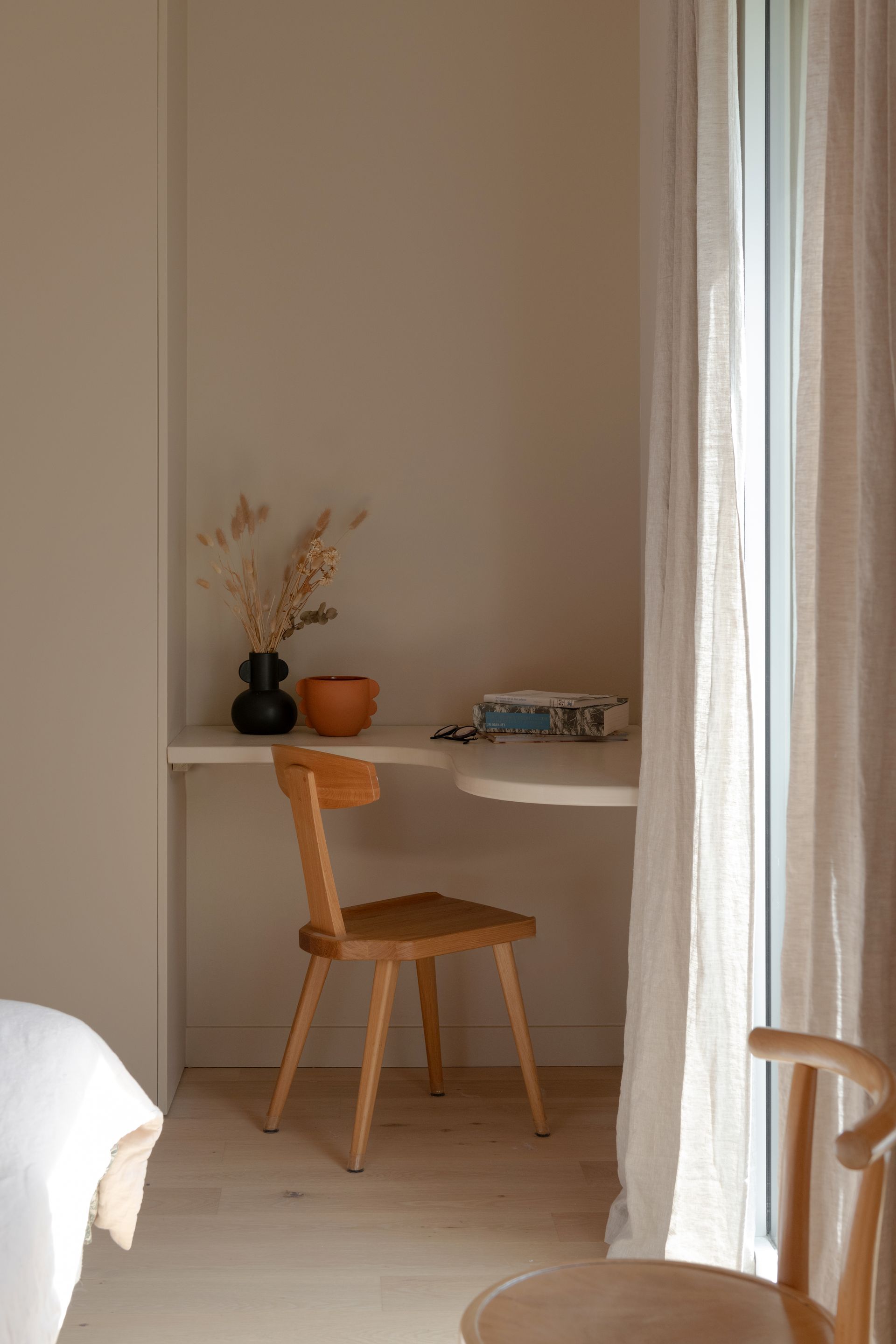 Le projet Chat Perché transforme cet appartement neuf en un intérieur sobre et chaleureux, où les beaux matériaux donnent le ton. Bois, teintes douces et lignes contemporaines se répondent pour créer une ambiance élégante et cohérente. Le mobilier existant trouve naturellement sa place dans ce nouvel univers, pensé dans la continuité des espaces et adapté au quotidien de tous les habitants, humains comme félins.