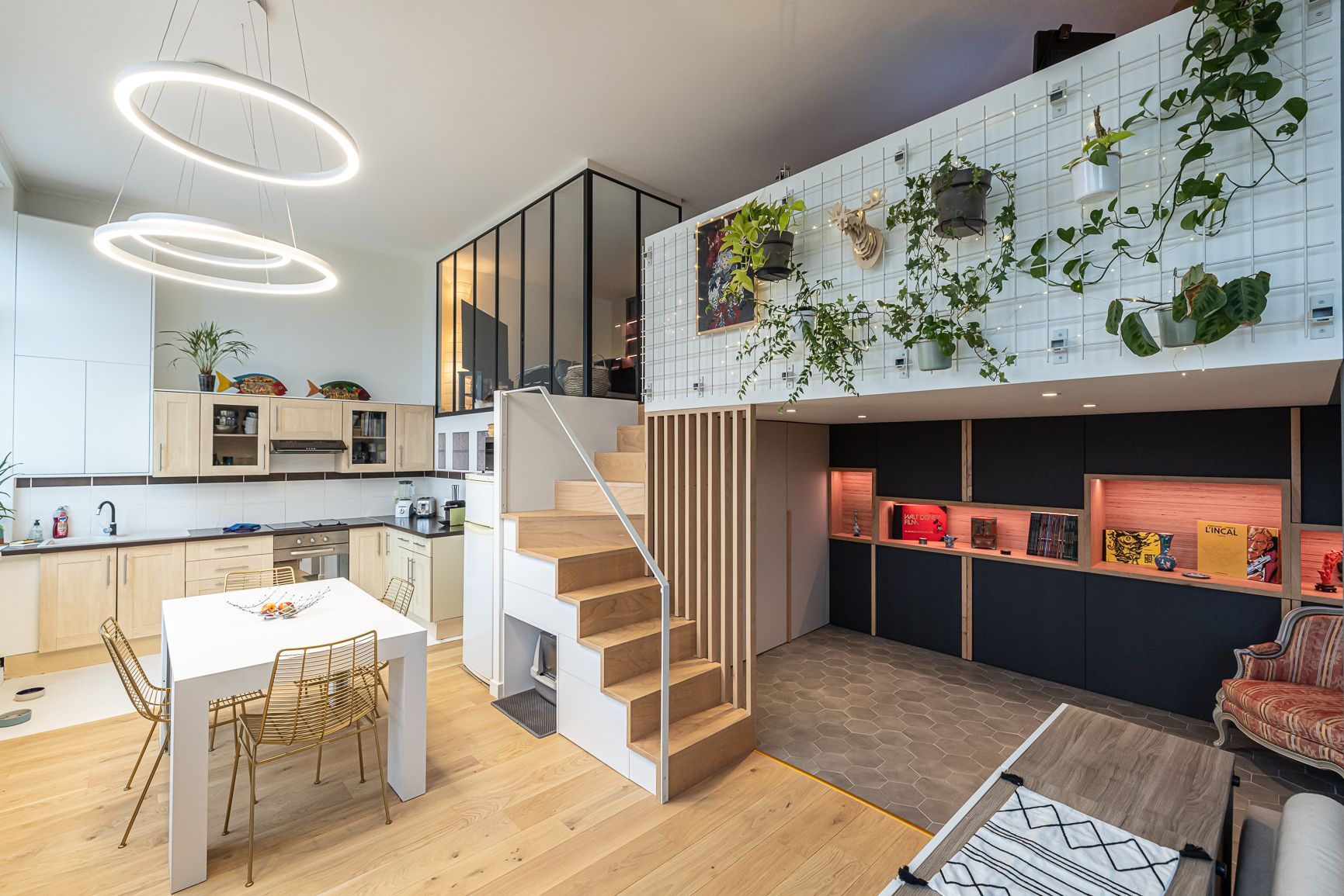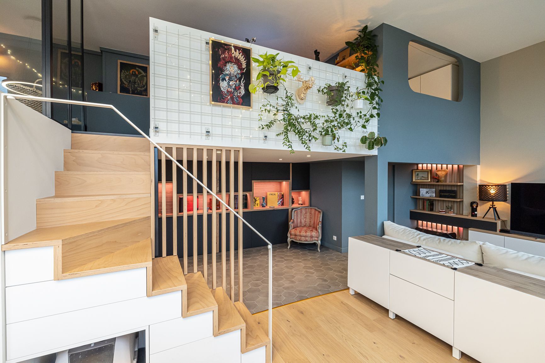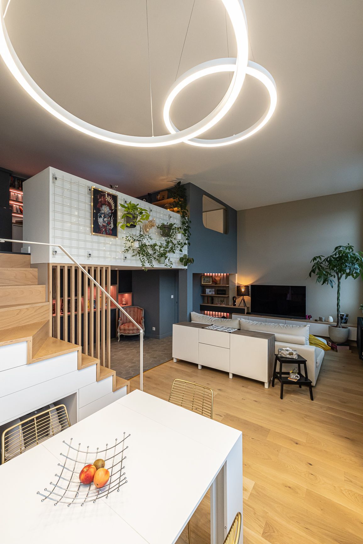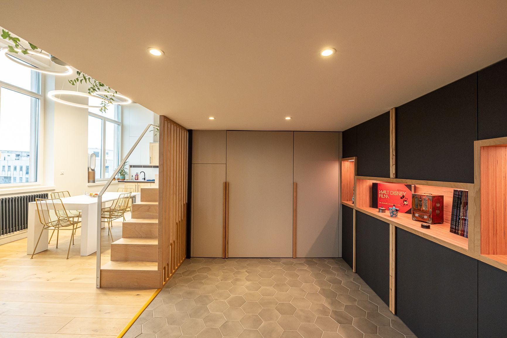 Malgré le caractère évident de cet appartement baigné de lumière, nous avons vite compris quel serait le challenge de ce projet : la hauteur tout juste suffisante pour de vrais espaces de vie à l'étage et l'optimisation des rangements pour un couple où le télétravail est omniprésent.