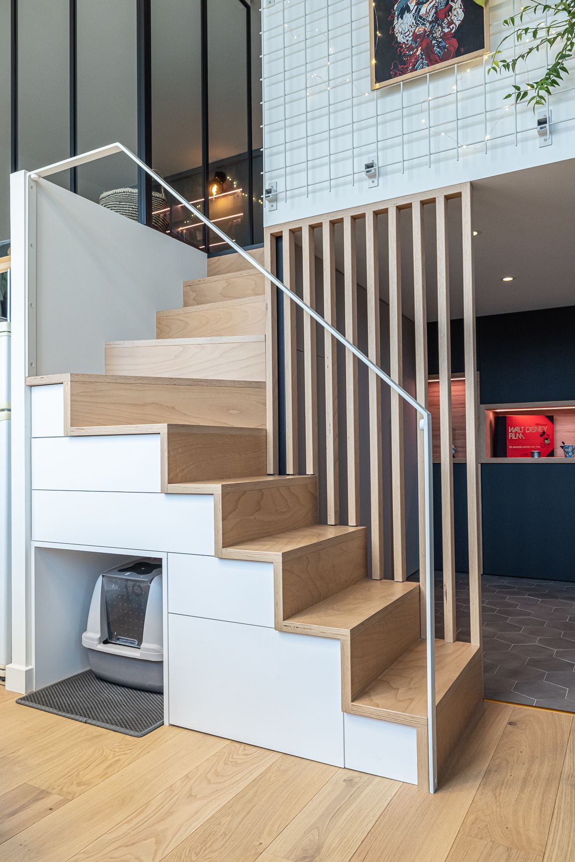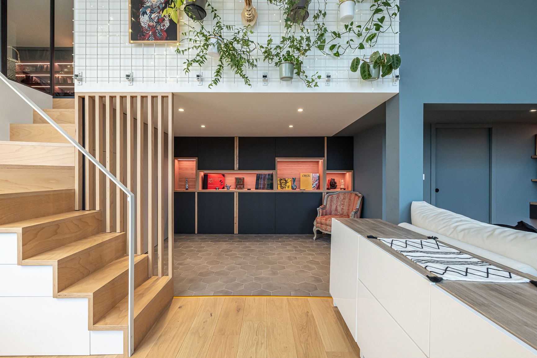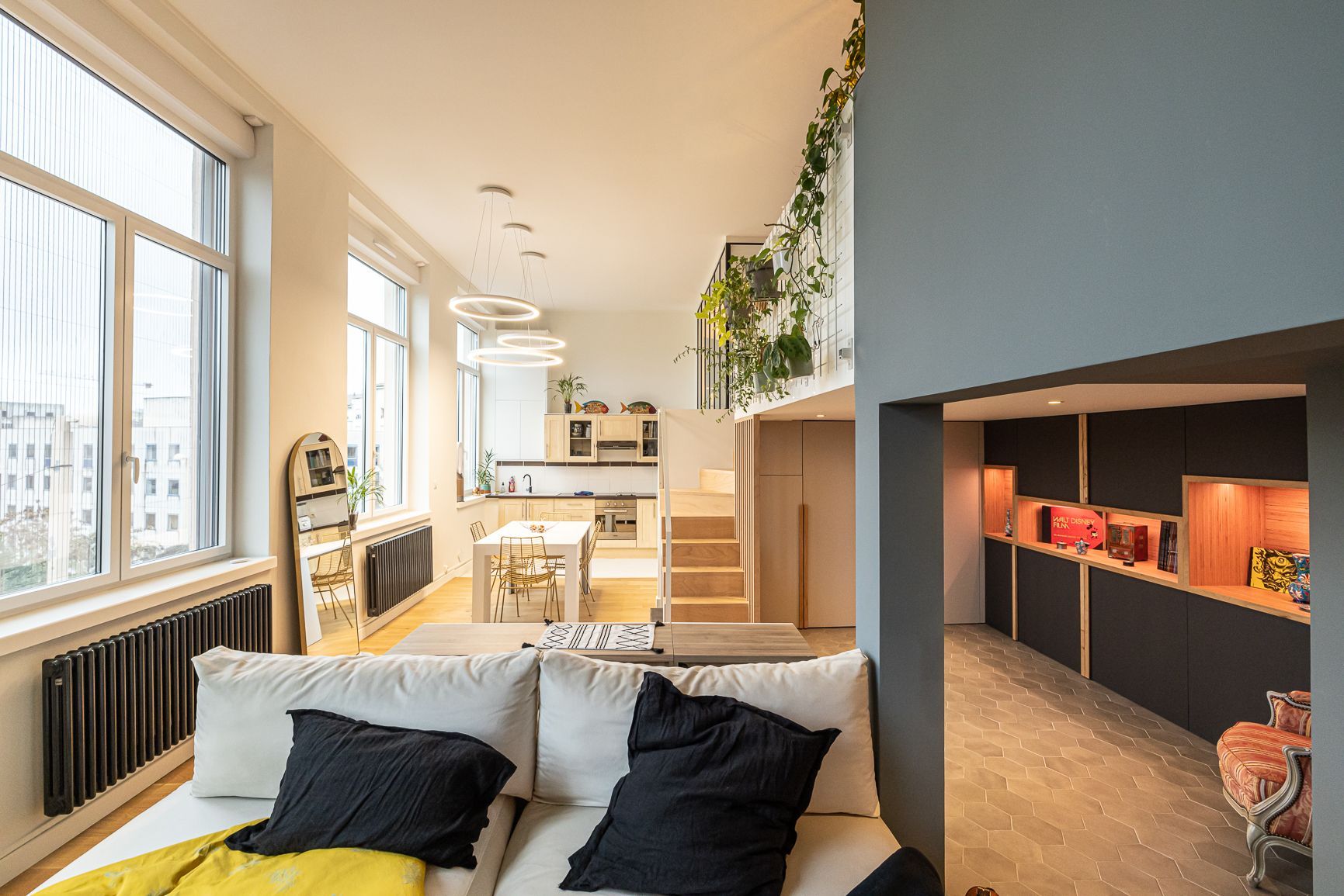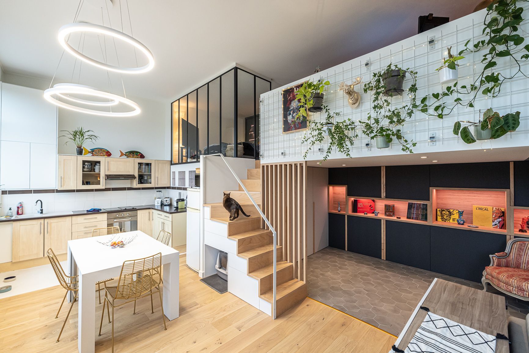 Malgré le caractère évident de cet appartement baigné de lumière, nous avons vite compris quel serait le challenge de ce projet : la hauteur tout juste suffisante pour de vrais espaces de vie à l'étage et l'optimisation des rangements pour un couple où le télétravail est omniprésent.