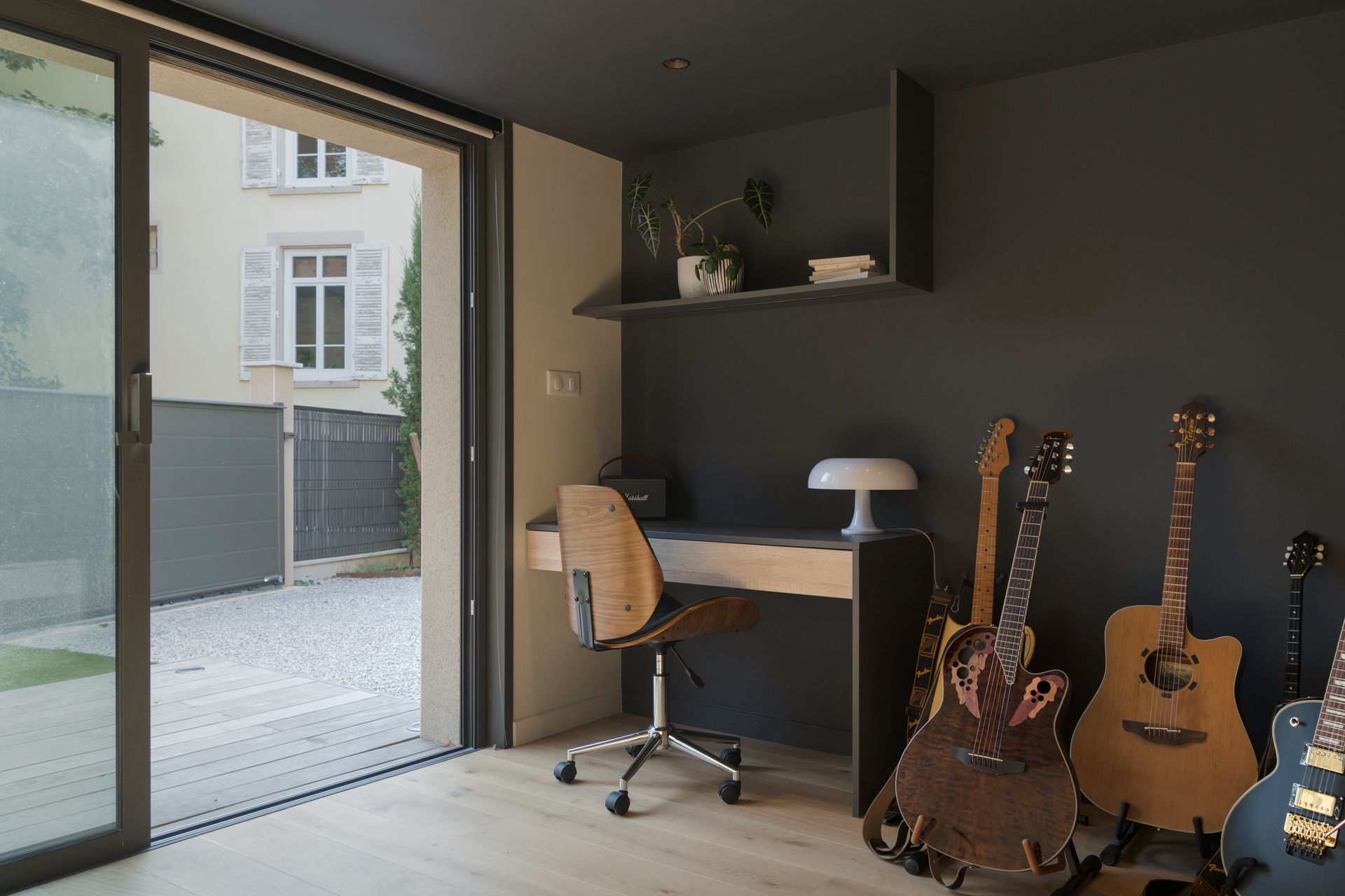 Le projet comprend également la création d’un studio de musique, pensé comme un espace dédié, isolé et fonctionnel, offrant des conditions adaptées à la pratique musicale tout en préservant la tranquillité du reste de la maison.