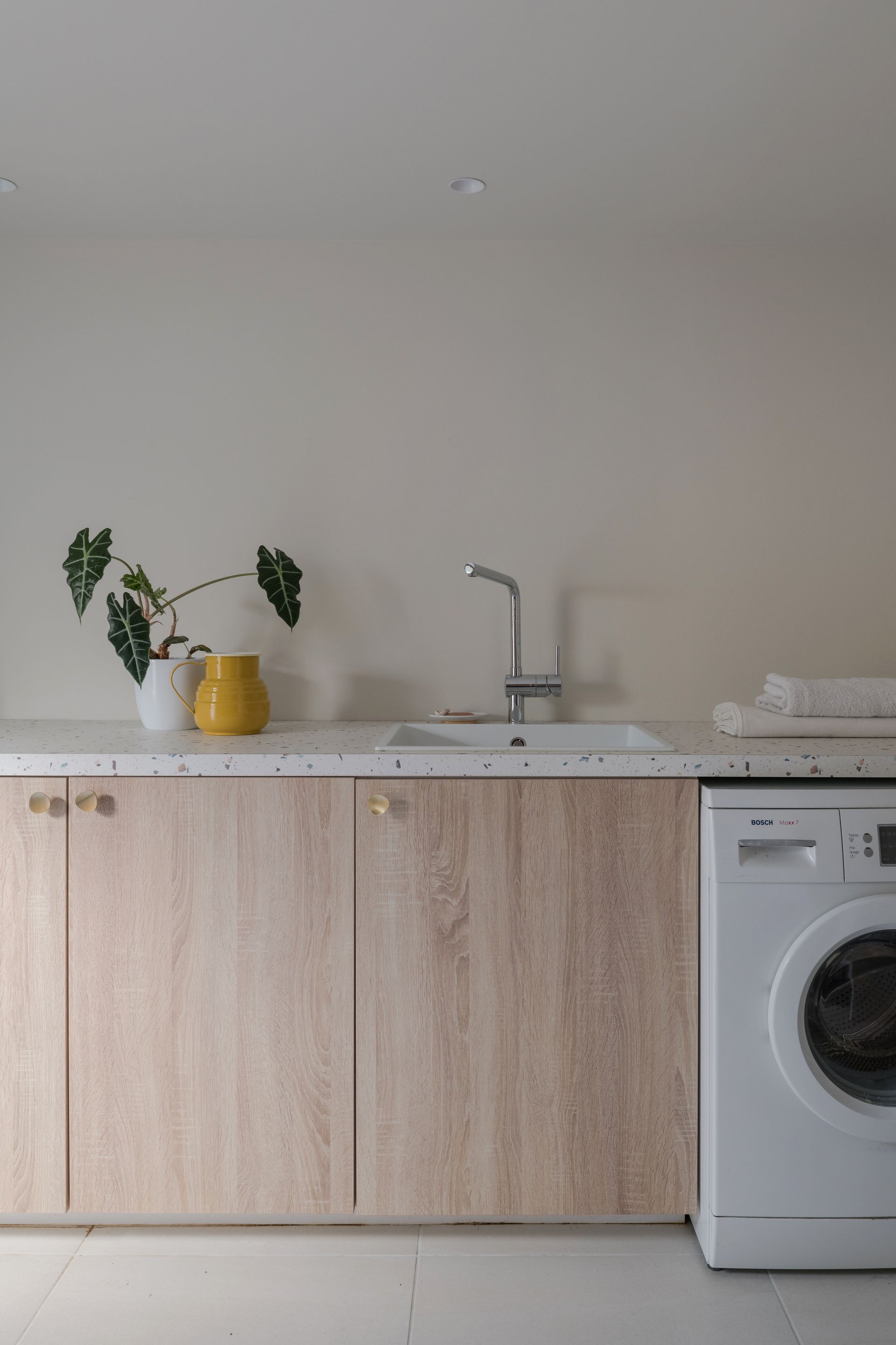 Une buanderie indépendante a également été créée afin de dissocier les fonctions techniques des espaces de vie. Pratique et bien organisée, elle améliore le confort au quotidien et participe à une meilleure gestion des flux dans la maison.