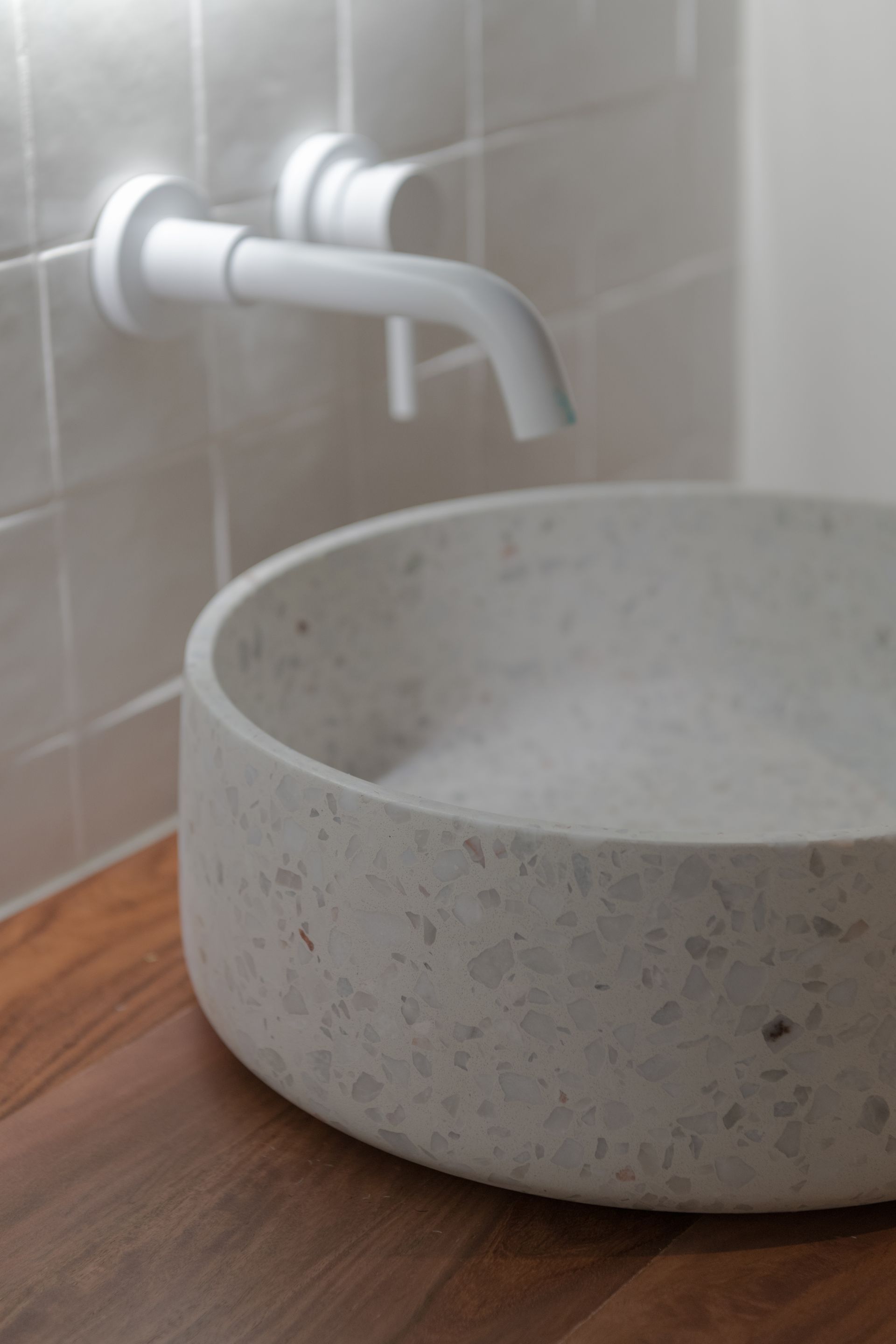 La salle de bain, spacieuse et colorée, participe à l’identité du projet tout en répondant aux besoins de la vie quotidienne. Une buanderie complète l’ensemble, apportant une vraie valeur d’usage et facilitant l’organisation de la maison.