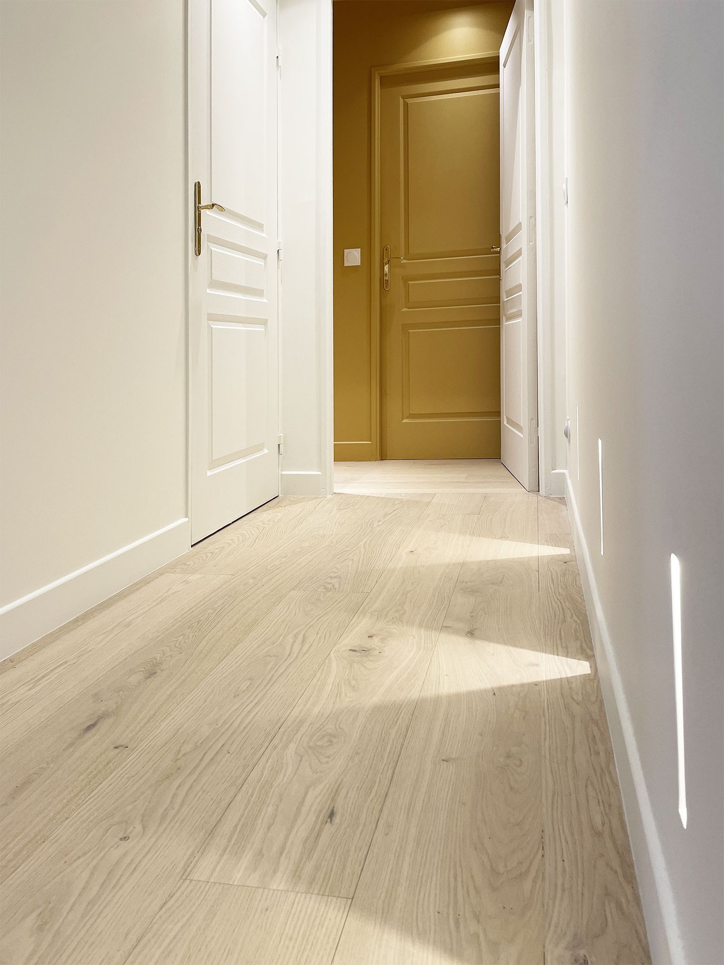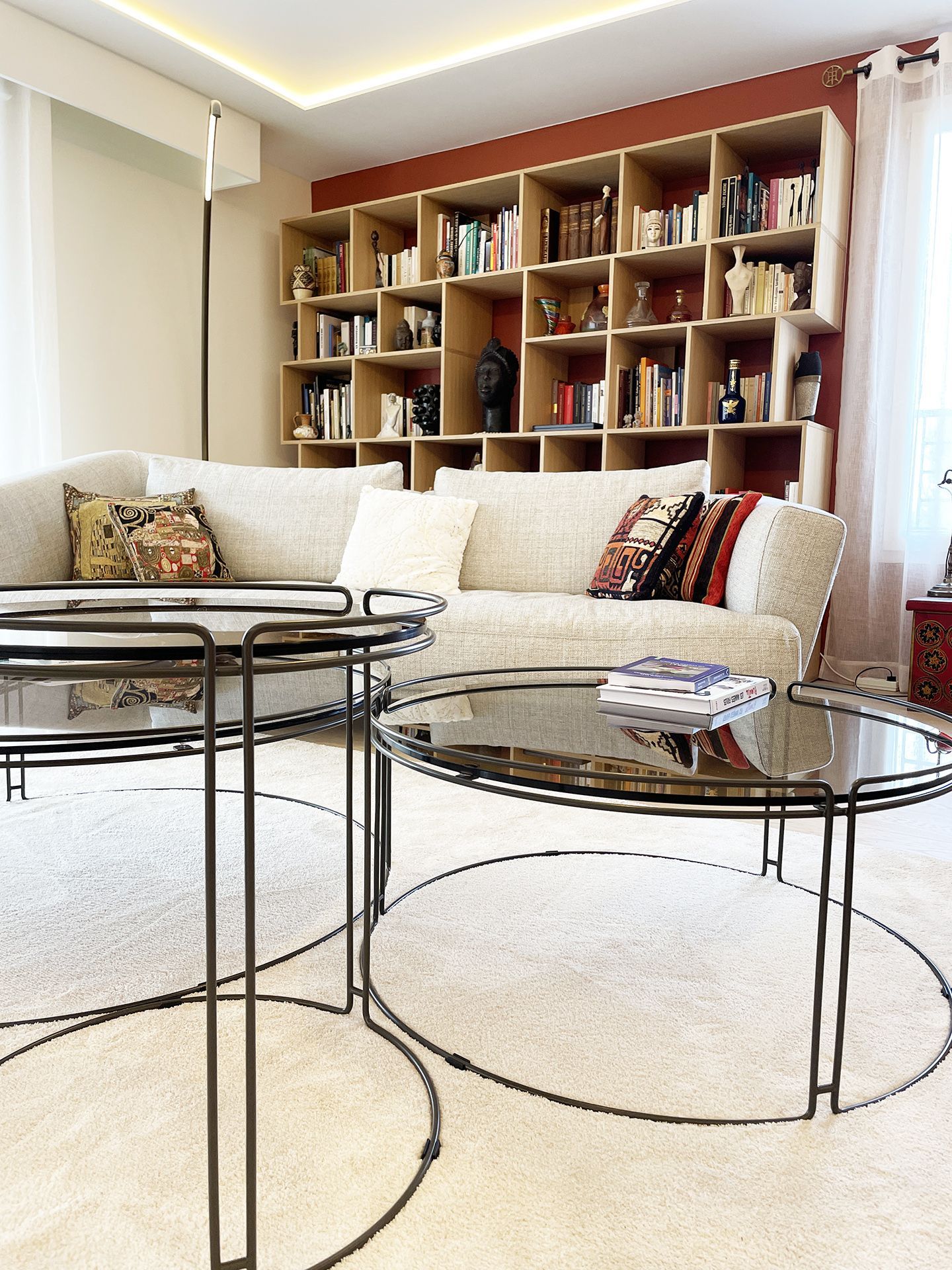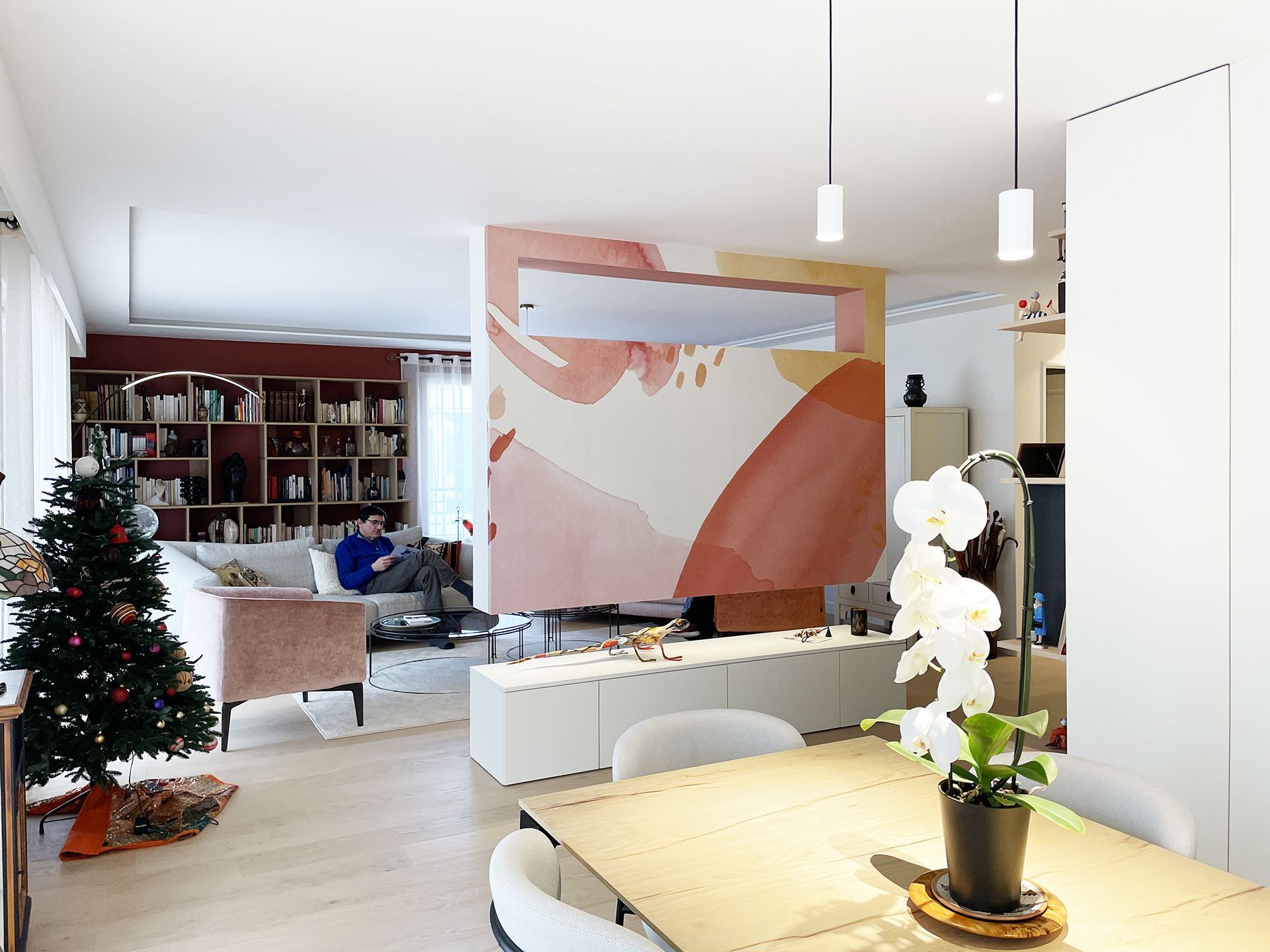 La peur principale et justifiée des propriétaires ne s'est donc pas révélée vraie : l'espace spacieux pouvait vite devenir "trop" grand, impersonnel et difficile à meubler. Mais grâce à ce "cloisonnement" créé par des rangements sur mesure à la fois uniques et décoratifs, il fait ainsi bon vivre dans cet appartement où la fluidité entre les espaces et la luminosité ont été conservés, sans perdre en fonctionnalité.