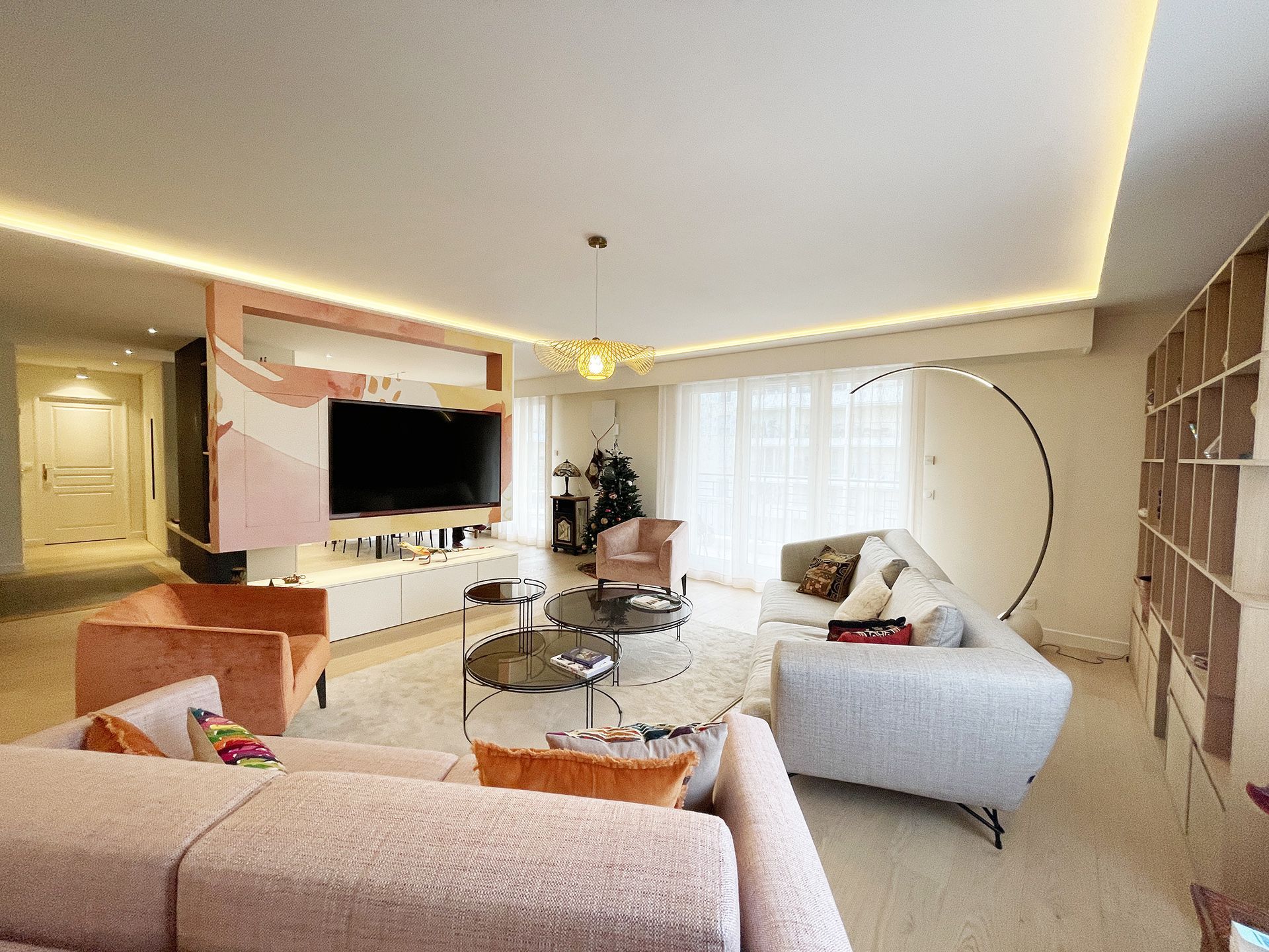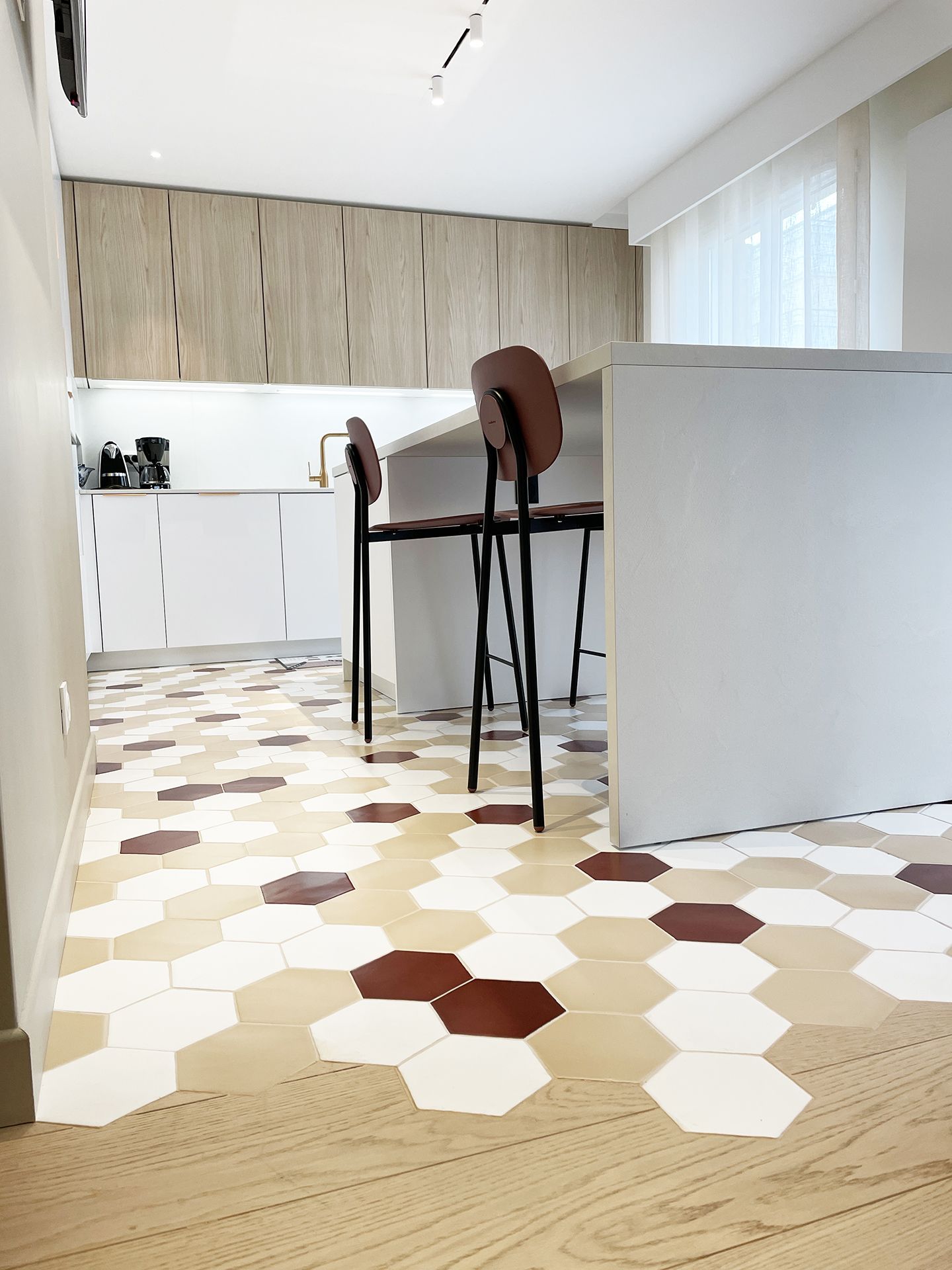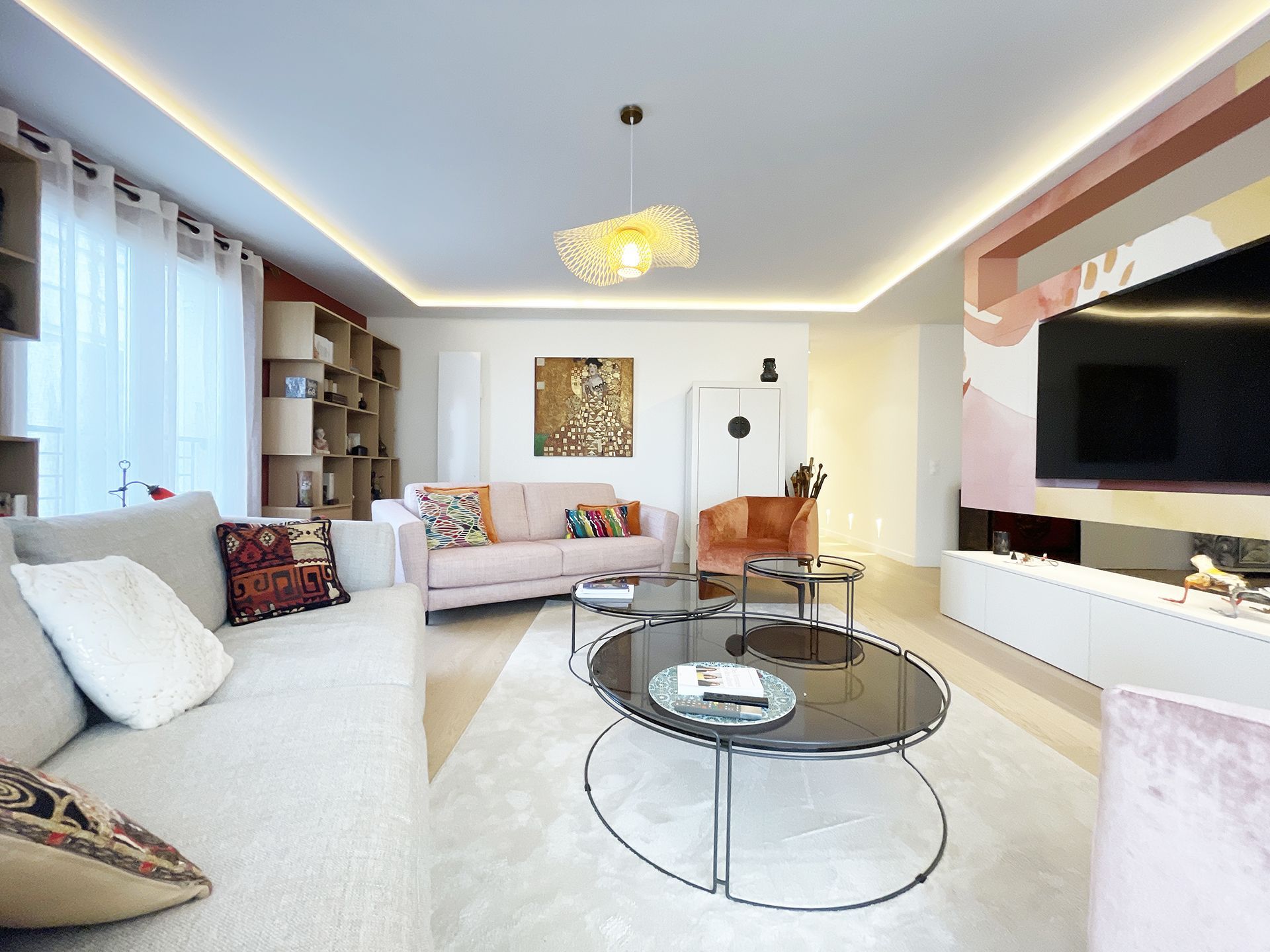 Les propriétaires de cet appartement de Rueil Malmaison ont décidé de changer de vie : après avoir passé plusieurs années en maison, ils décident, à leur retraite, de choisir ce vaste appartement confortable. Cependant, malgré la superficie, ils ne profitent pas des m² existants, car les espaces sont très cloisonnés. De plus, les chambres sont dispatchés dans l'espace, et les couloirs pour y accéder sont alors nombreux. L'objectif était alors de rassembler les chambres dans une "zone nuit" bien dissociée, à l'écart des pièces à vivre, permettant à la fois plus d'intimité mais aussi de gagner des m² utiles afin de créer une nouvelle pièce fonctionnelle : une buanderie. Et cerise sur le gâteau, la cuisine dorénavant attenante à la salle à manger/séjour peut donc être ouverte et bénéficier ainsi de quelque 60m² de pièce de vie continue.